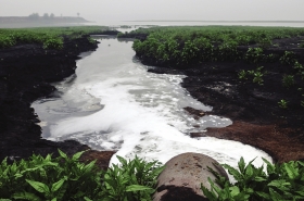 电镀资讯:2013年3月,常德汉寿县湖南广源麻业有限公司的排污口向洞庭湖排放污水。